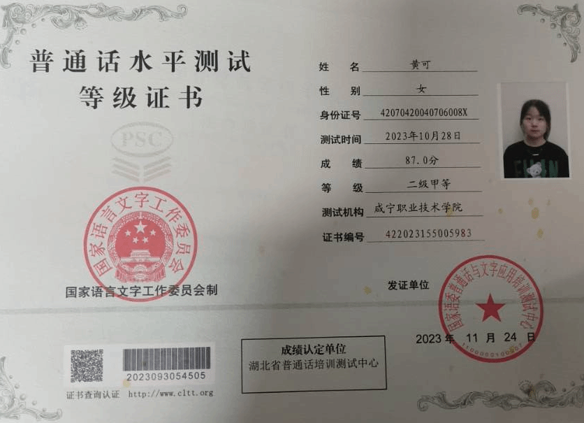 普通话等级证书