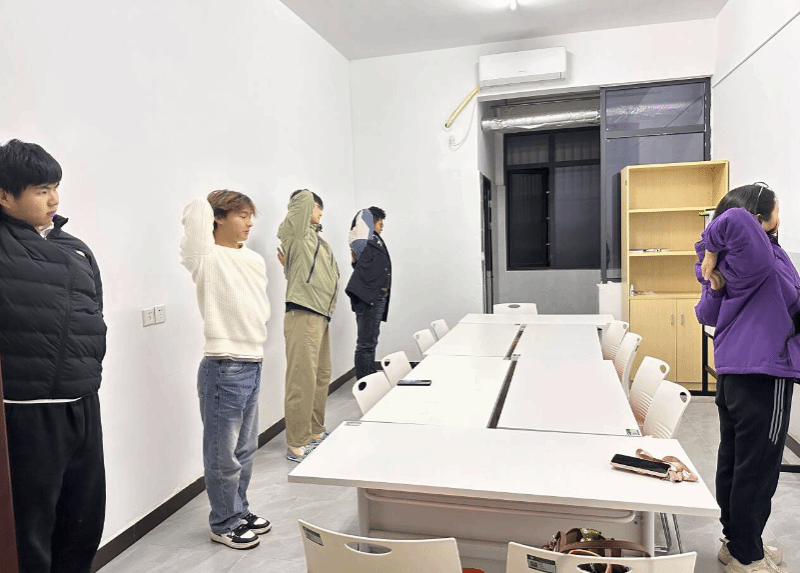 知识讲解结束后,活动进入实操训练环节。在冥想训练中,朱芳老师以轻柔的指令引导学生调整呼吸、放空思绪,帮助大家快速进入身心放松状态;随后,她又针对学生日常学习中易出现疲劳的肩颈、腰背等部位,带领大家开展温和的瑜伽拉伸,在规范动作的同时纠正不良体态,助力身体充分释放压力,现场氛围轻松且治愈。