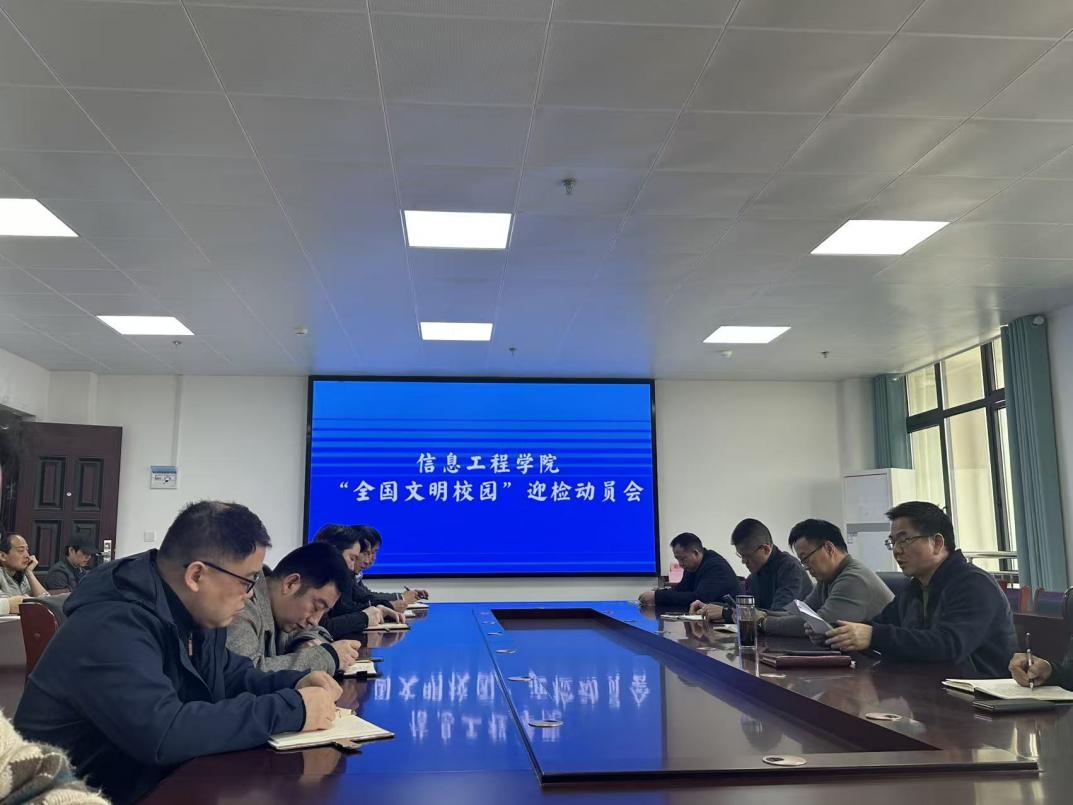 为深入贯彻落实学校“全国文明校园”迎检动员会精神,信息工程学院迅速行动、周密部署,于3月25日下午学校动员会后第一时间召开专题会议传达学习,并于3月27日上午组织专项检查与再部署会议,进一步细化分工、压实责任,全面推动文明创建各项工作落地见效。