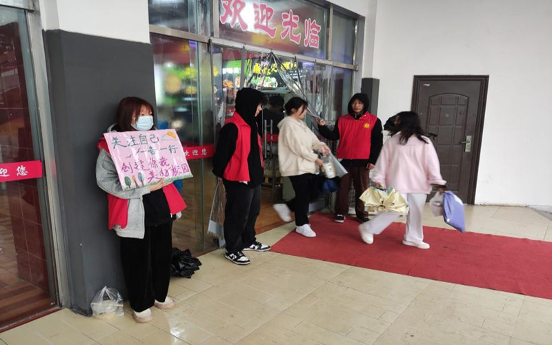 以“关注自己一言一行,创建你我美好校园”为初衷,开展垃圾清扫、文明宣传、文明行为劝导等志愿服务活动。我院志愿者分队深入南北食堂、包保清洁区等地,对随地吐痰、乱扔垃圾、未按指定区域收放餐具、不排队等不文明行为进行及时劝导制止,对排队进餐、文明用语进行倡议宣传,号召大家共同努力关注自我的言行,营造可感可知的文明新风,共同为创建文明校园增光添彩。